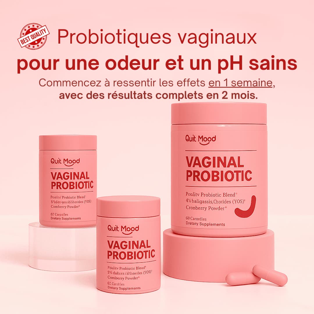 Le pH vaginal idéal se situe entre 3,8 et 4,5, créant un environnement acide qui protège contre les bactéries et les champignons nocifs. Des facteurs comme le stress, les antibiotiques ou les produits irritants peuvent perturber cet équilibre. Intégrer Quit Mood, avec son mélange probiotique spécifique, aide à maintenir un pH équilibré et à renforcer les défenses naturelles du microbiote vaginal.